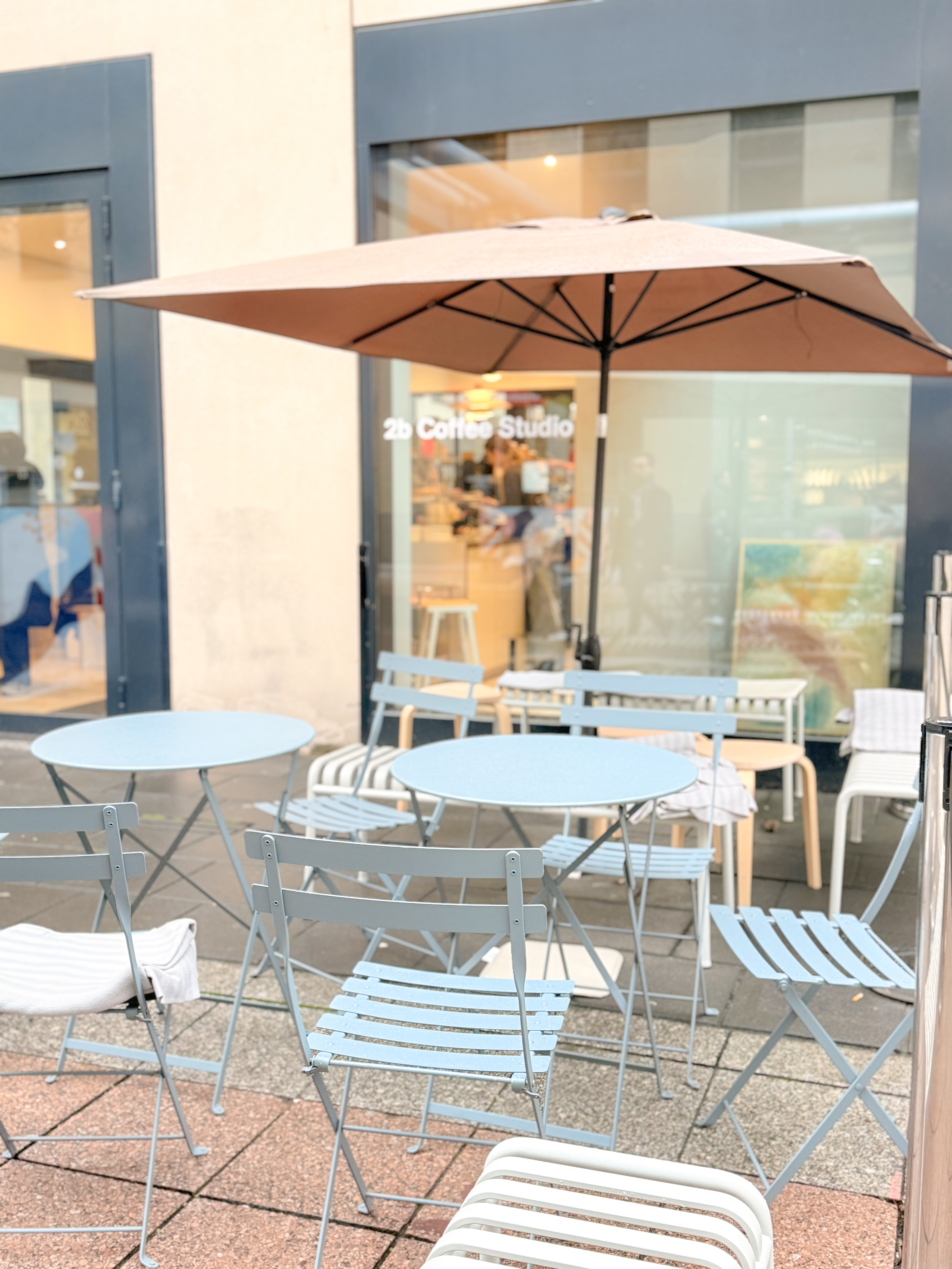 One of the best matcha spots in Frankfurt's city centre. 2b Coffee Studio serves smooth, perfectly prepared matcha in a calm, welcoming space. The team is friendly and relaxed, and the café has a quiet energy that makes it ideal for a reset between meetings. Pastel blue terrace seating outside, beautiful wooden tables inside, and consistently great drinks. Especially lovely on warm, sunny days when you can sit outside and enjoy a quiet moment in the middle of downtown.
