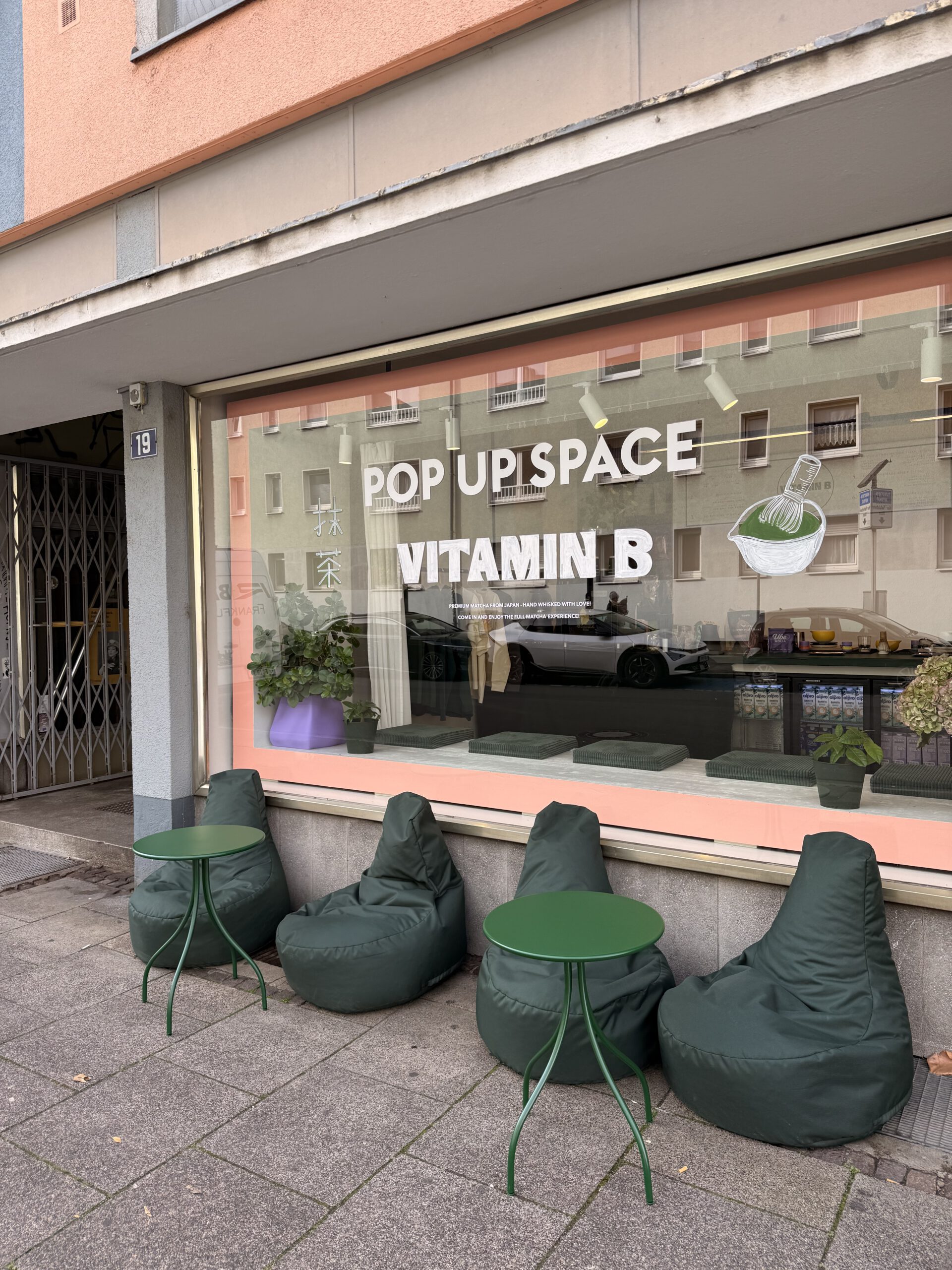 Frankfurt's matcha pop-up with a playful soul. Vitamin B serves premium Japanese matcha, hand-whisked with love, from a bright storefront with green bean bag seating outside. Their signature matcha drinks topped with dragonfruit powder are as beautiful as they are delicious.