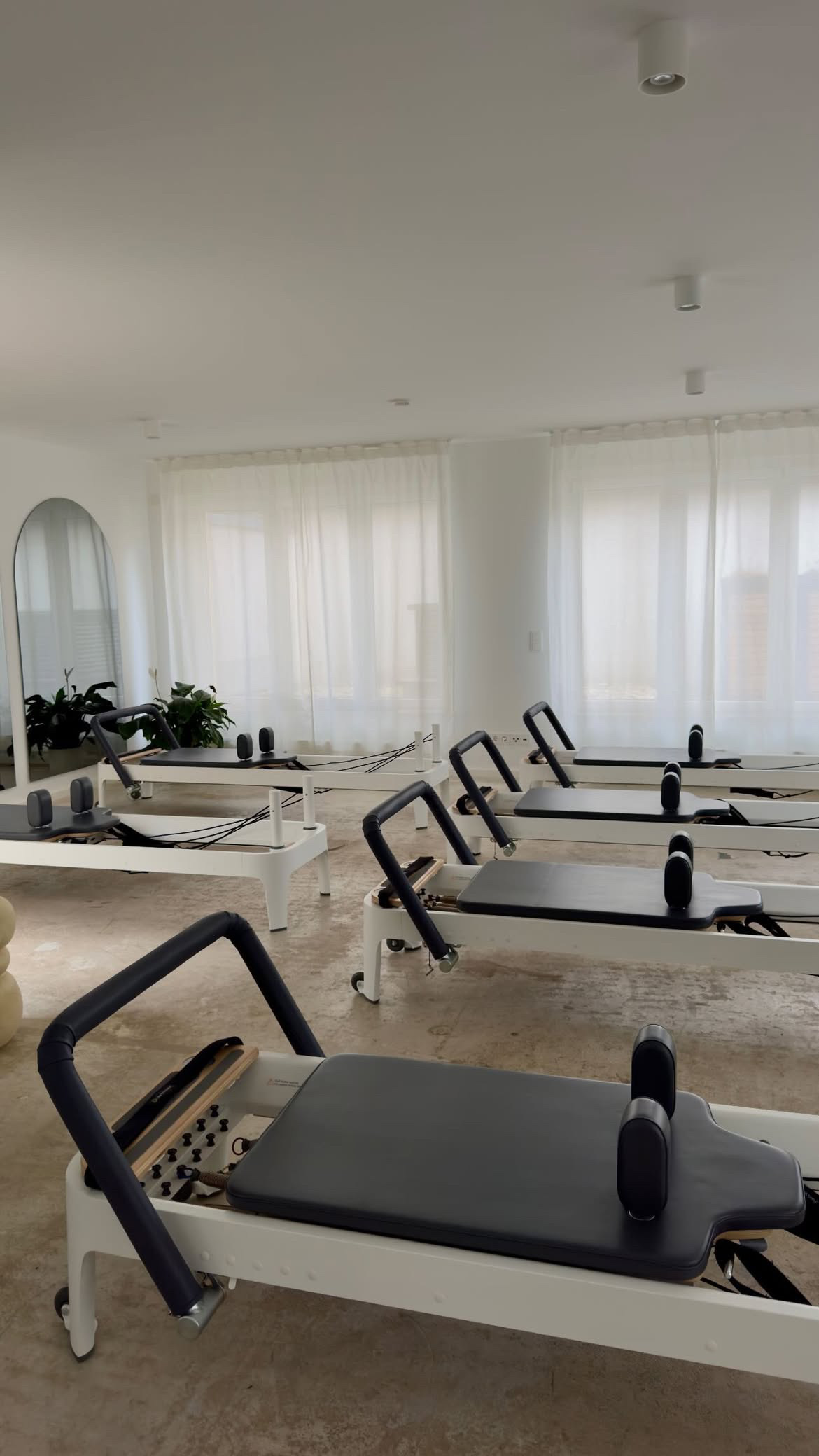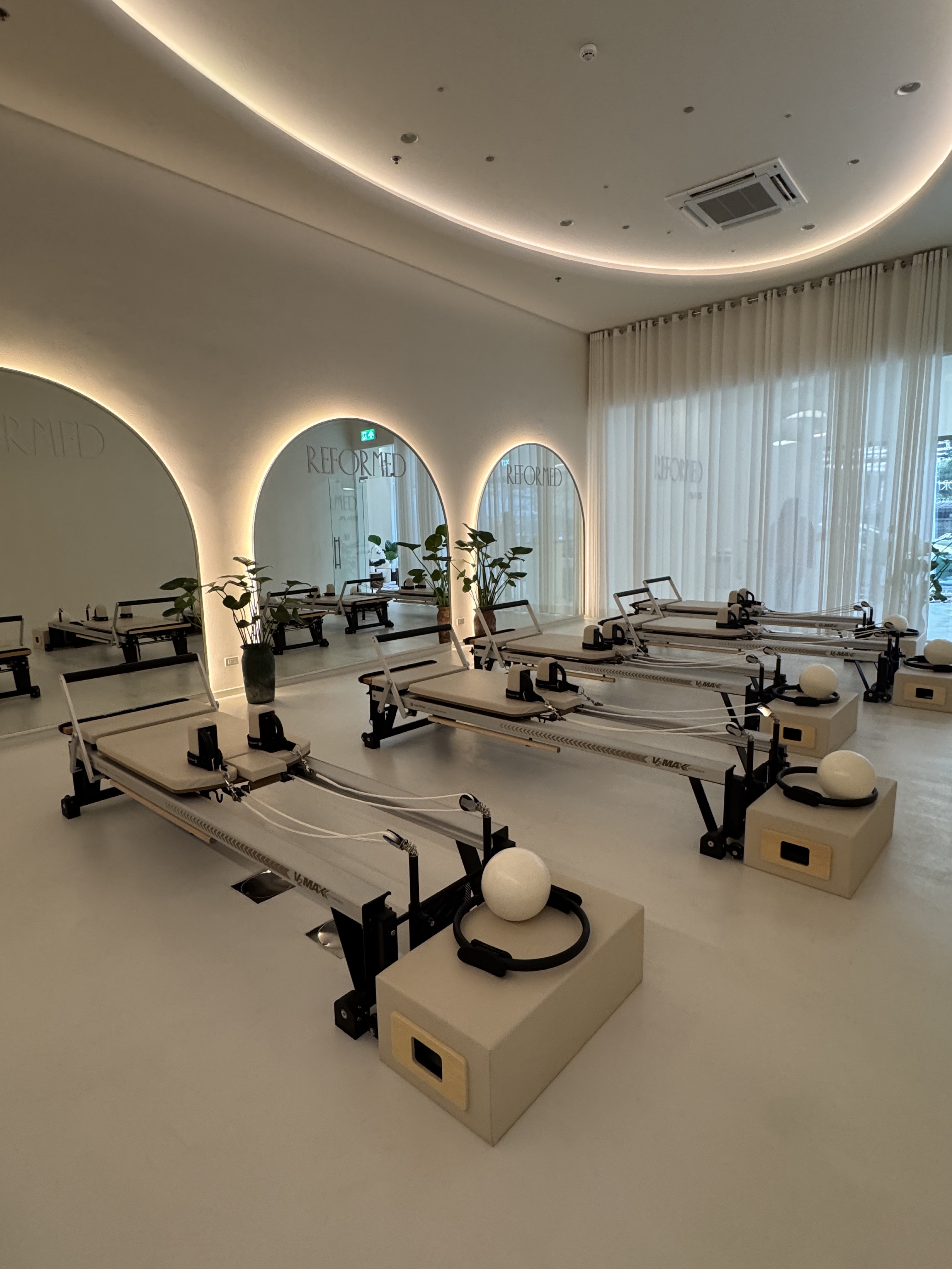 Vanilla girl aesthetics meet mindful movement. Boutique reformer Pilates studio in Bangkok's Sukhumvit 31 with soft, light-colored vanilla girl aesthetics and a calm atmosphere. Small group classes (max 6 people) led by certified Merrithew and Balanced Body trained instructors. Spacious, clean, and beautifully designed.