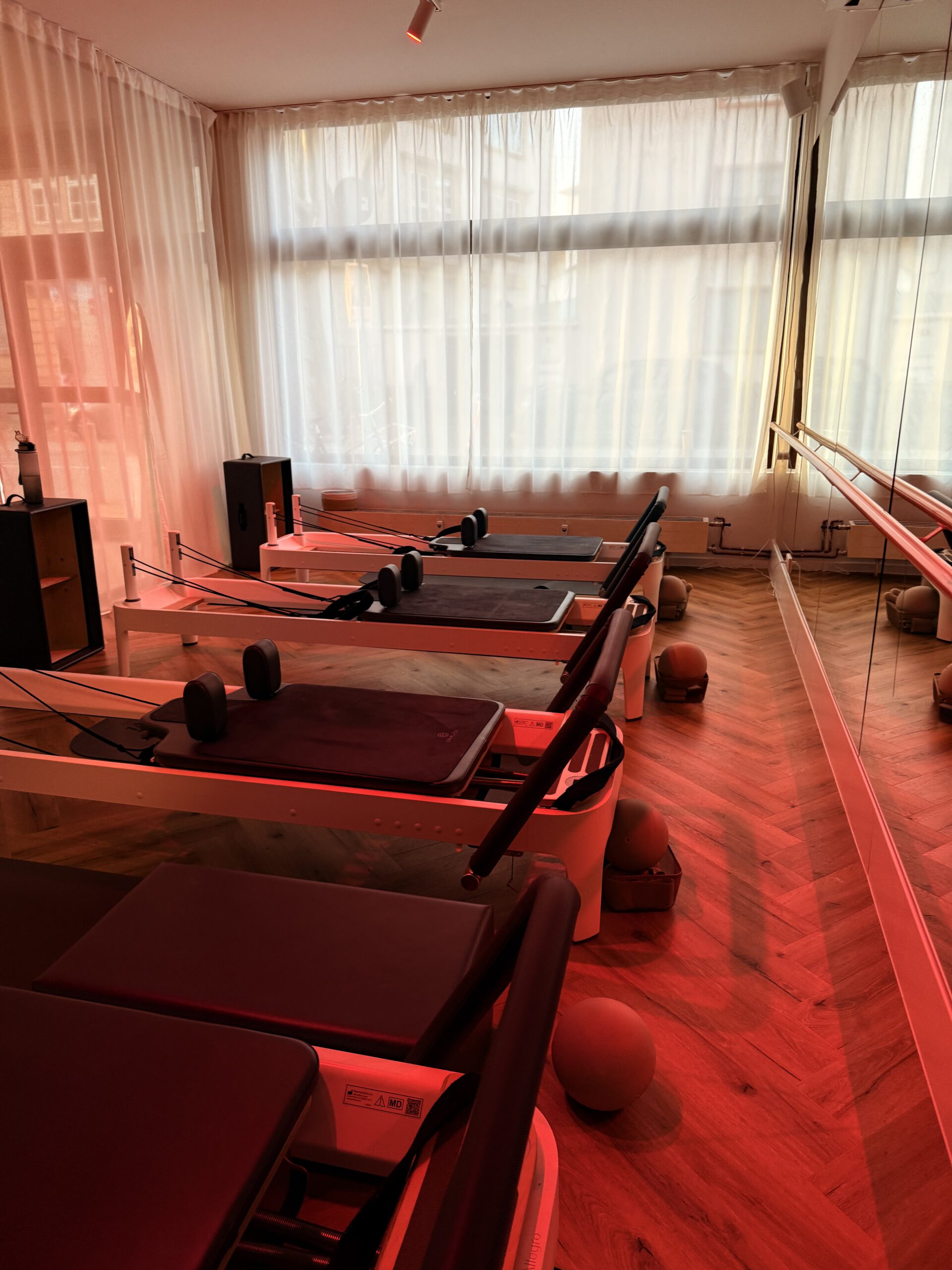 Pilates classes in a charming place: Pilates Twentyfour. Modern boutique Pilates studio in Frankfurt Ostend with an elegant vibe and one detail that makes it memorable: ceiling mirrors. When you’re lying on the reformer at Pilates Twentyfour, you see yourself from above in the ceiling mirrors, which changes everything about how you connect to the movement and correct your form. The studio itself is beautifully designed — ornate gold-framed mirrors, tropical plants, warm lighting, and reformers that feel as considered as the space around them. The Ostend location puts you in one of Frankfurt’s creative neighborhoods, easy to reach and close to cafés and galleries. What to know: the ceiling mirrors are what set this studio apart. Small classes with attention to form and technique.