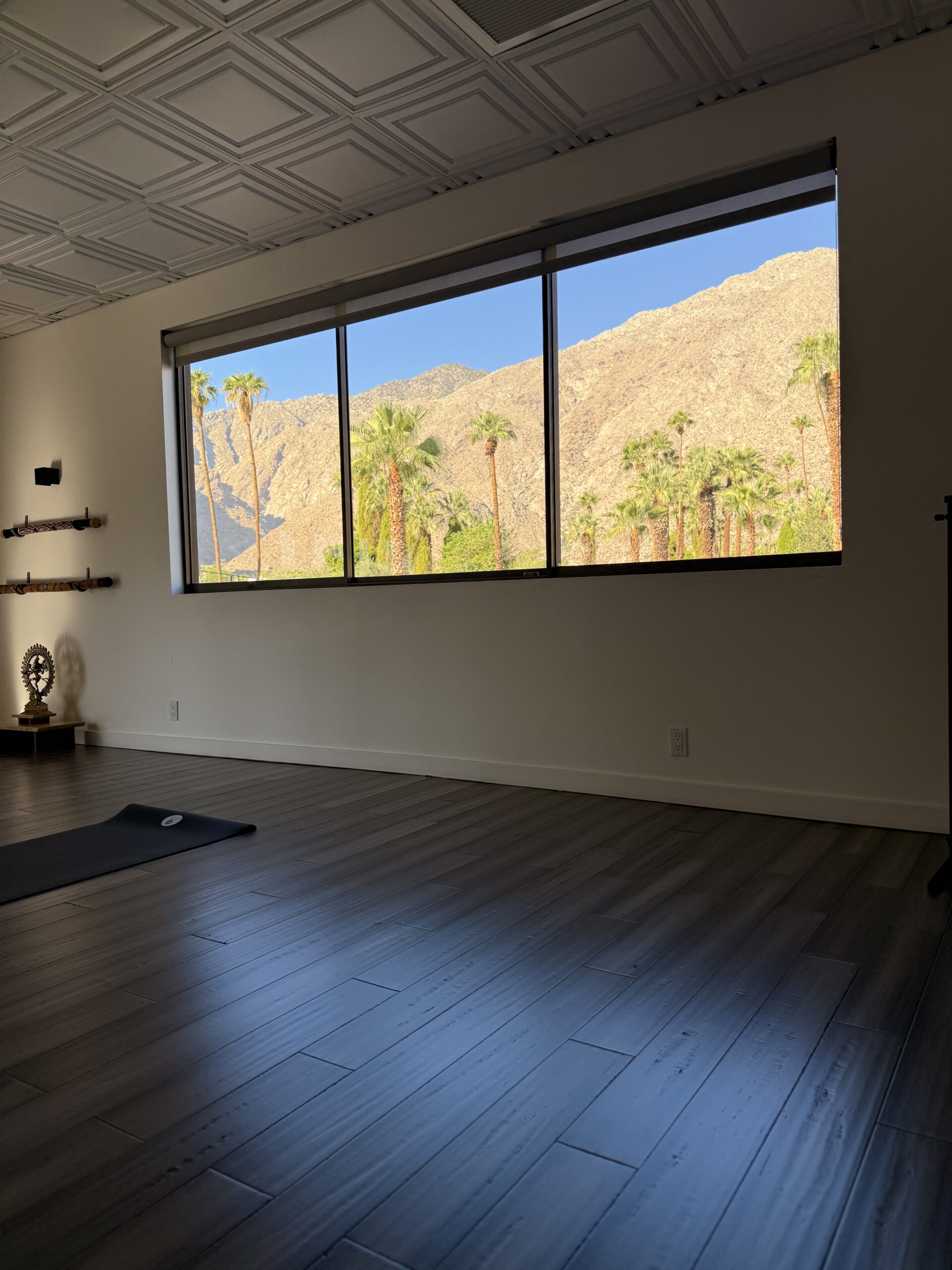 Stunning mountain views through huge studio windows. Yoga studio in downtown Palm Springs on South Palm Canyon Drive with breathtaking views of the mountains and palm trees. Traditional and contemporary yoga styles with experienced teachers. Live sound baths with crystal singing bowls in many classes.